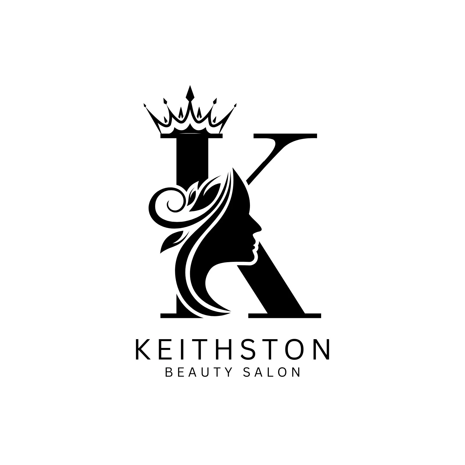 Elegant letter ‘K’ merged with a feminine profile and crown. Blends sophistication and beauty for premium salon branding.