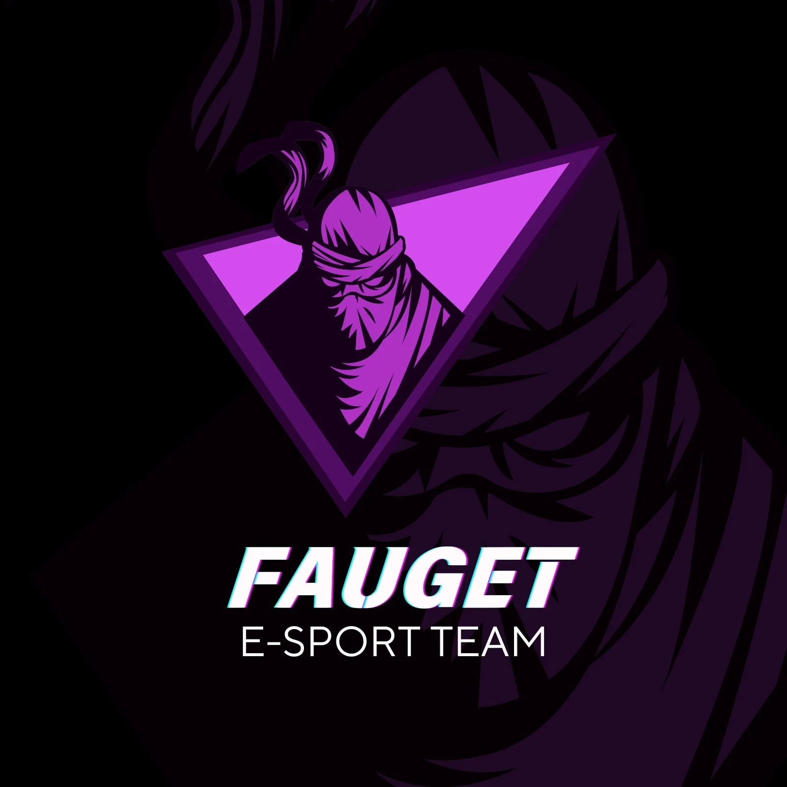 Striking ninja graphic with a bold purple theme and triangle frame. Designed to energize and empower competitive gaming teams.
