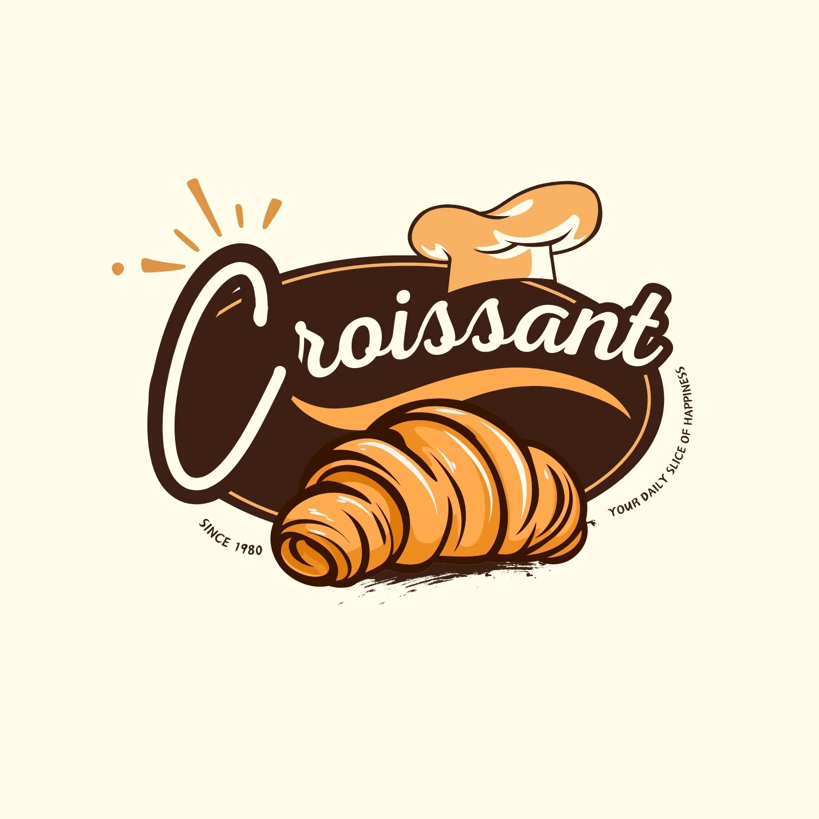 A charming, vintage-inspired logo featuring a detailed croissant illustration and friendly script font. Perfect for a bakery or café, it radiates warmth and artisan craftsmanship since 1980.